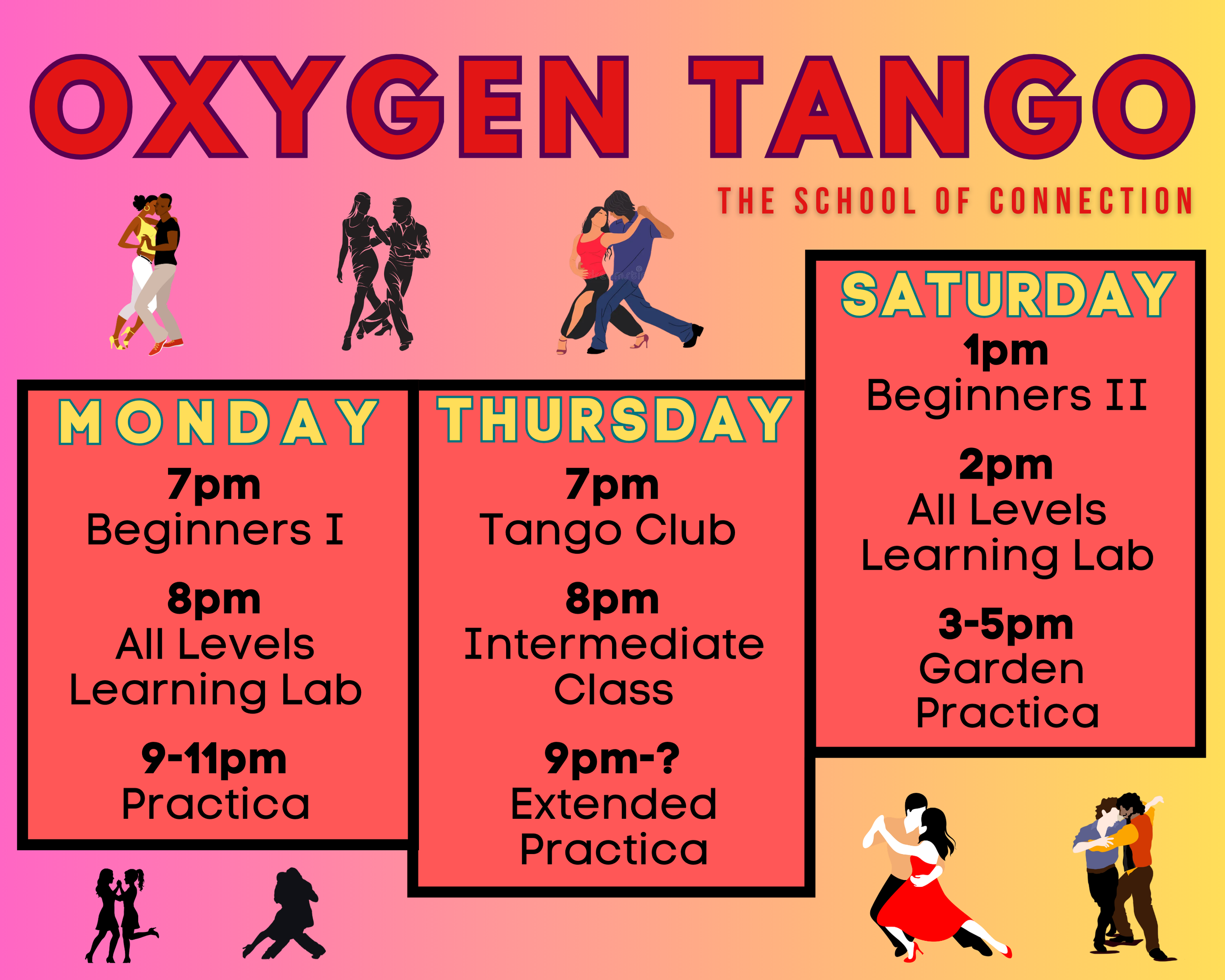 For more adventurous beginners who want to dive into the deep end, we recommend the Learning Lab on Monday or Saturday, a special class format where you learn the tango fundamentals working 1:1 at your own pace. Click here to register to start any week.