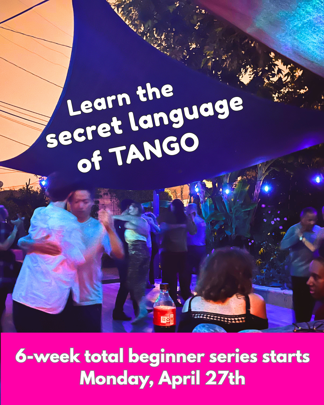 We also have a monthly Garden Milonga on the 4th Saturday of every month, and our enchanting Lantern Milonga a few times a year. Check the schedule or click here for all our events